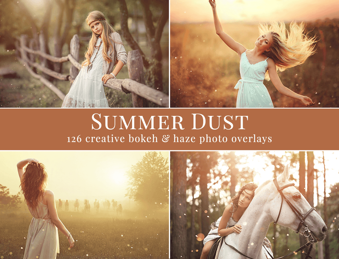 Create warm, glowing and atmospheric summer photos with this large collection of dust and haze...