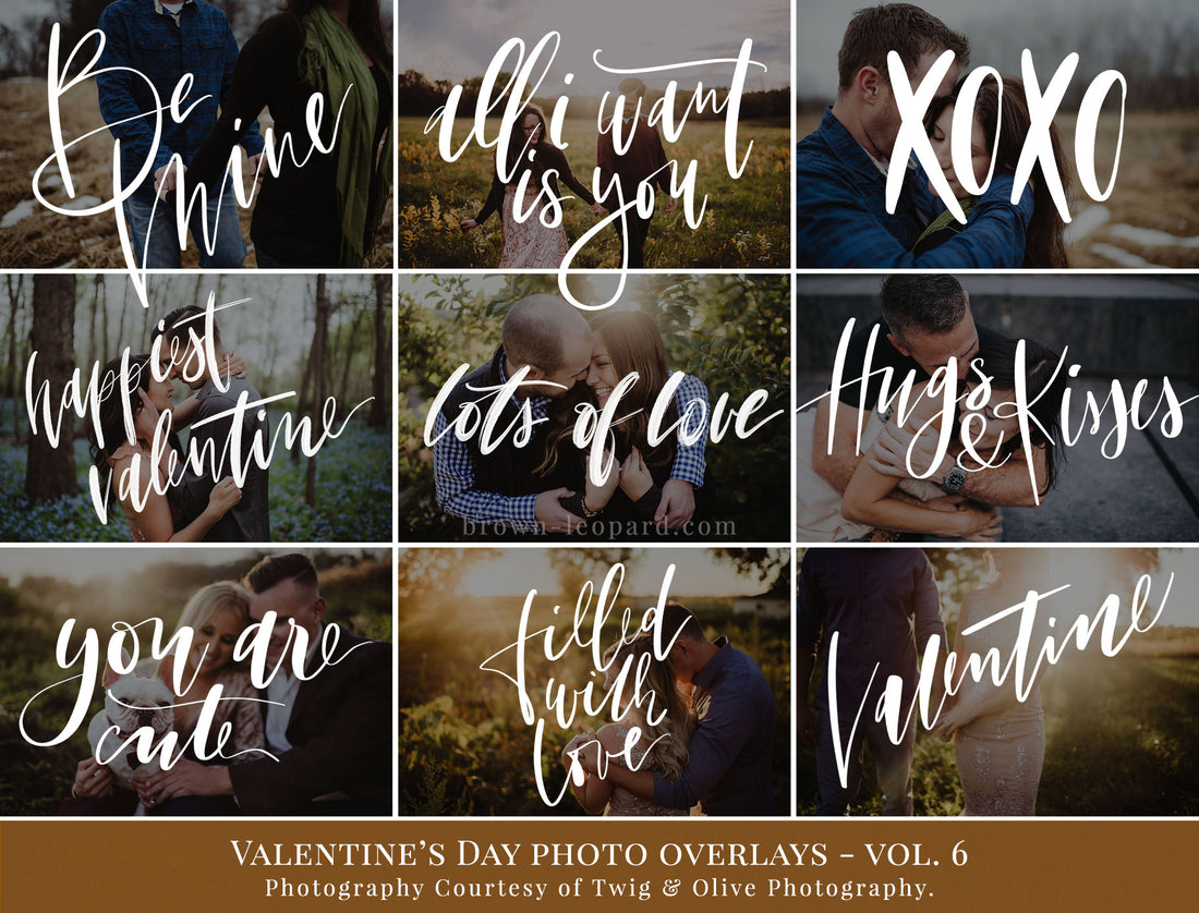 Create emotional, playful and romantic Valentine photos with this collection of 9 hand-lettered Valentine’s word...