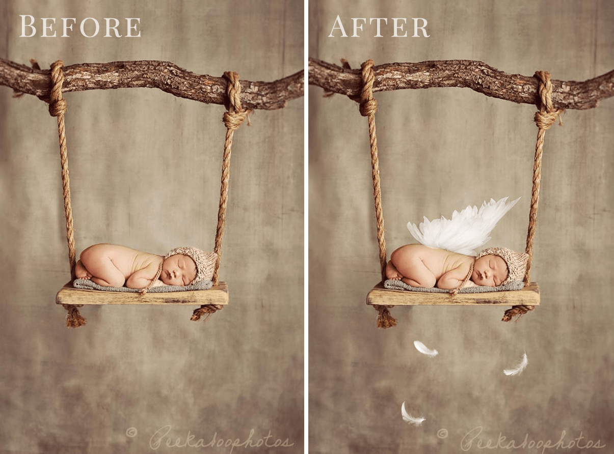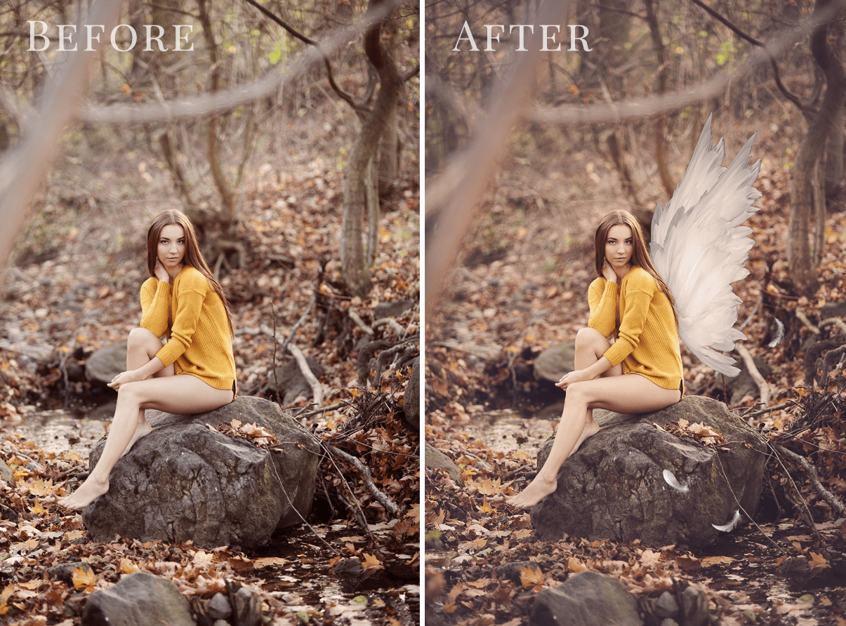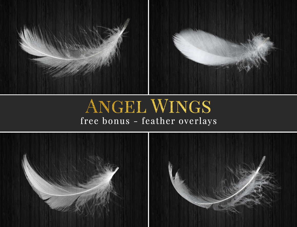 Create soft, emotional and heavenly portraits with this beautiful collection of angel wings and feathers photo overlays designed especially for photographers.