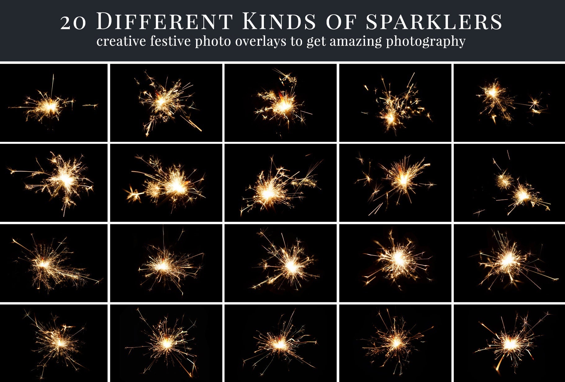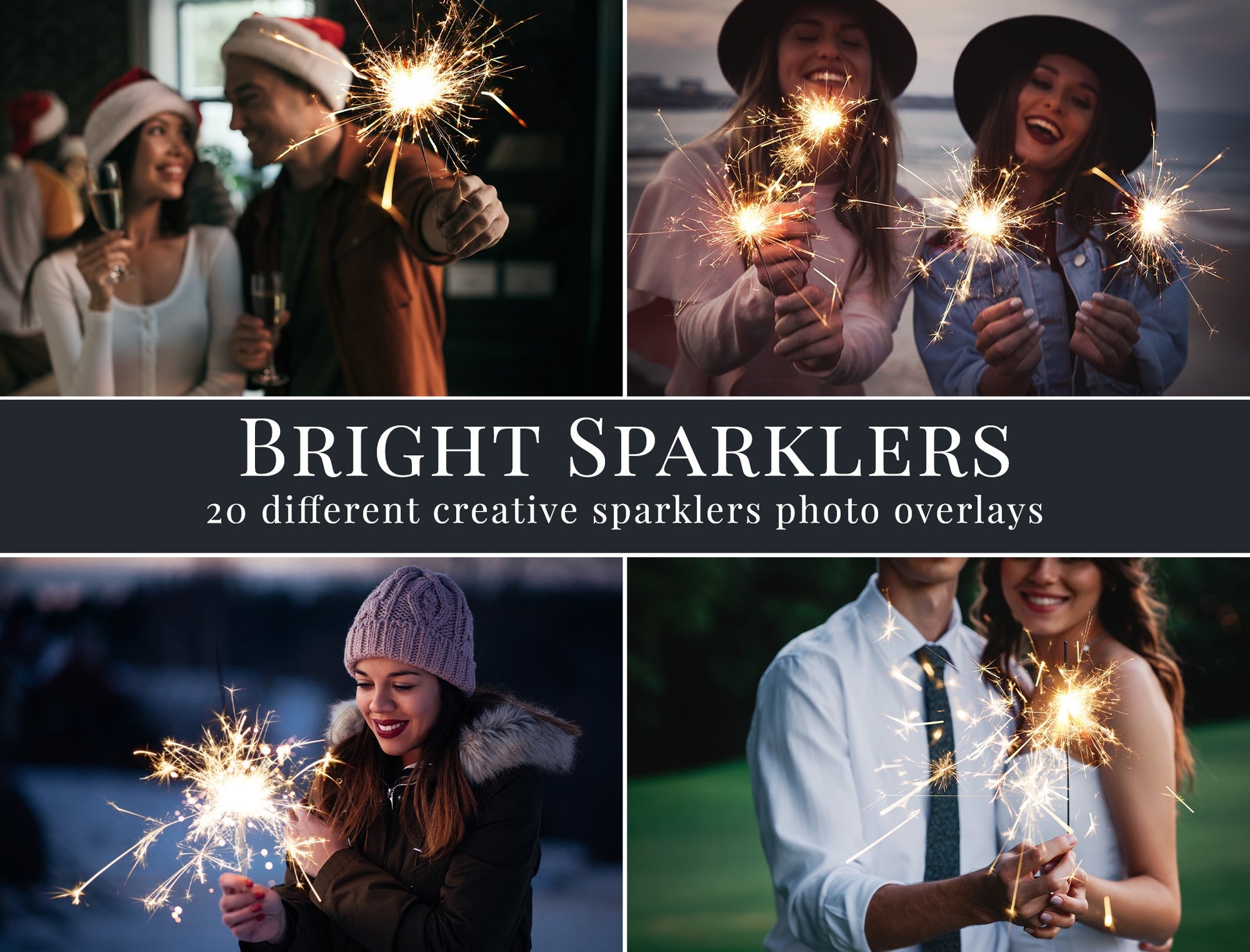 Create joyful, festive and glowing photos with this beautiful collection of sparklers photo overlays designed especially for photographers.