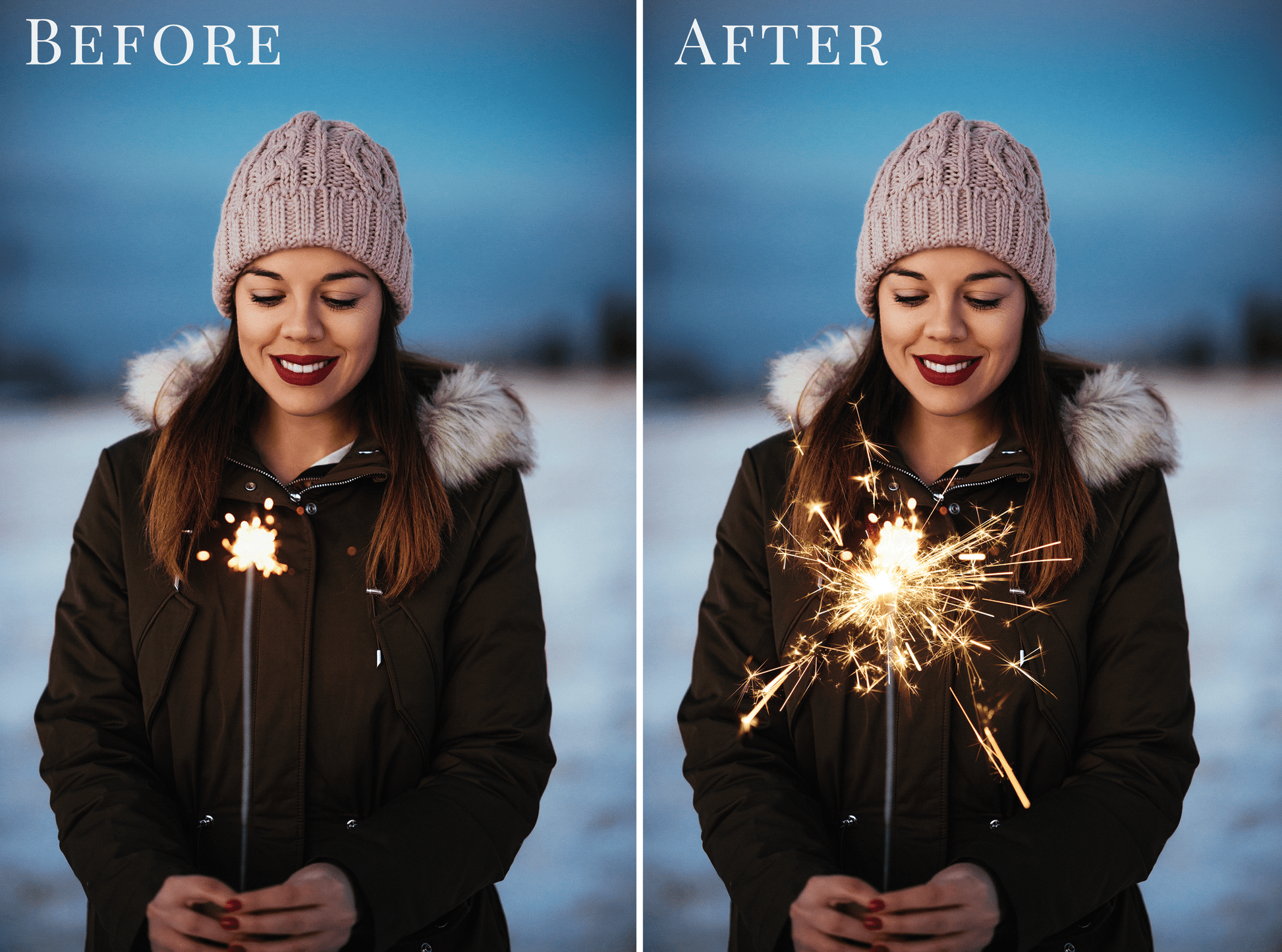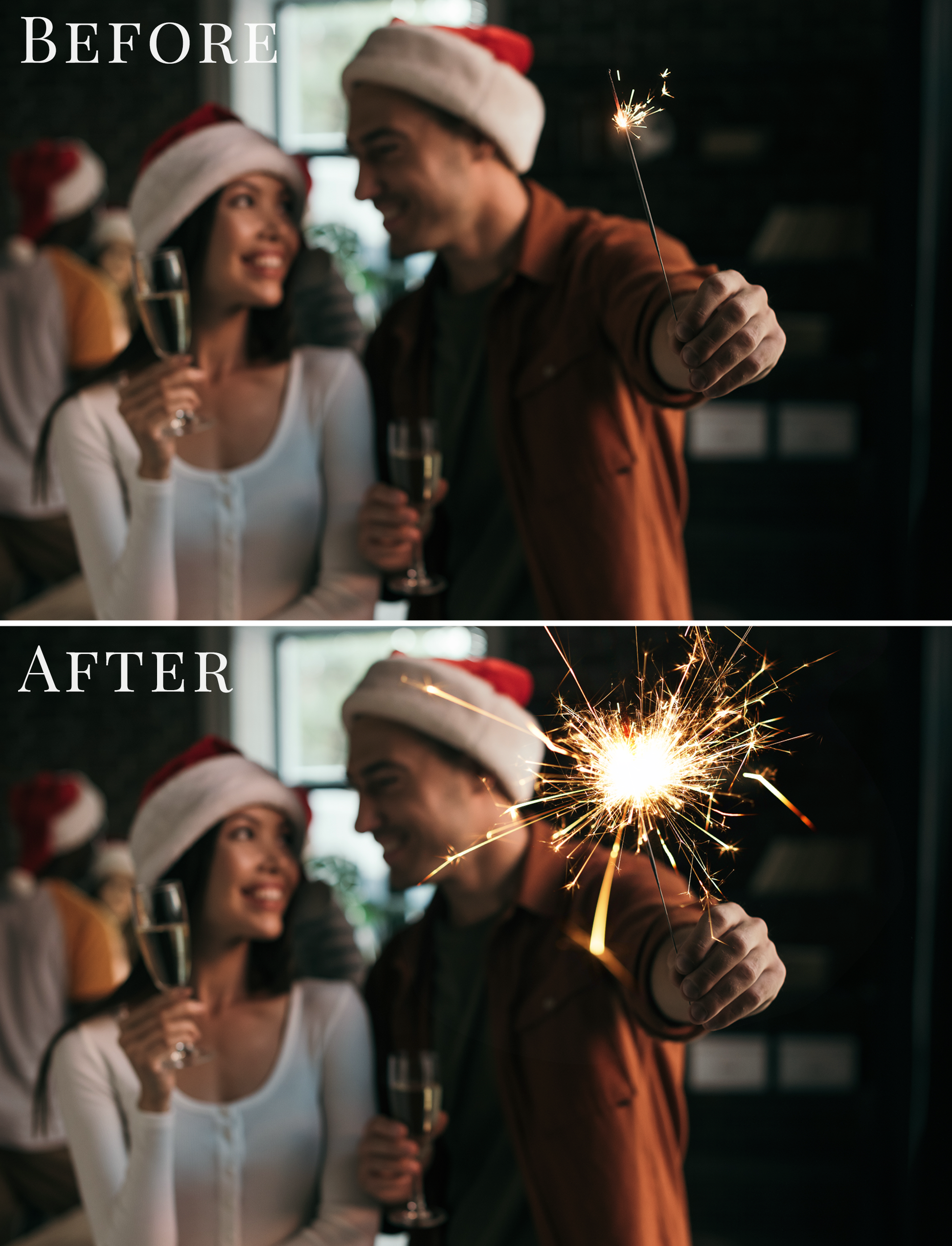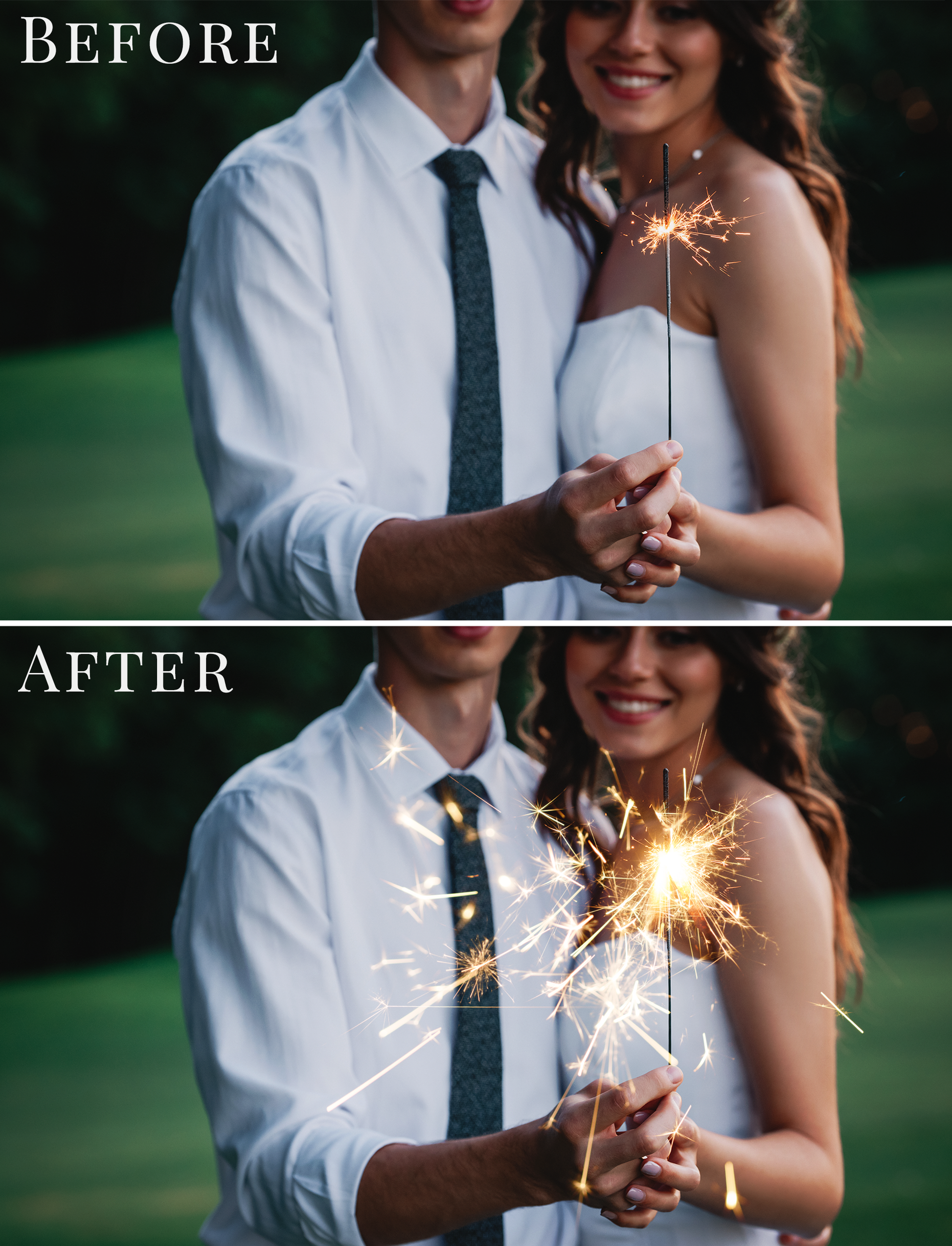 Sparkler effects are perfect for festive seasonal photography, portraits and weddings where you want to capture joy, excitement and magical moments.