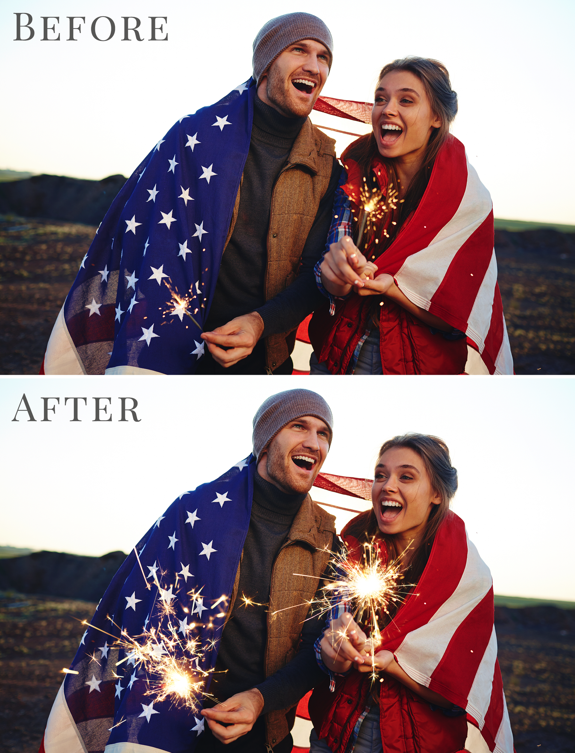 These overlays help you add bright sparkler light, movement and celebration atmosphere that instantly brings energy and emotion into your images.