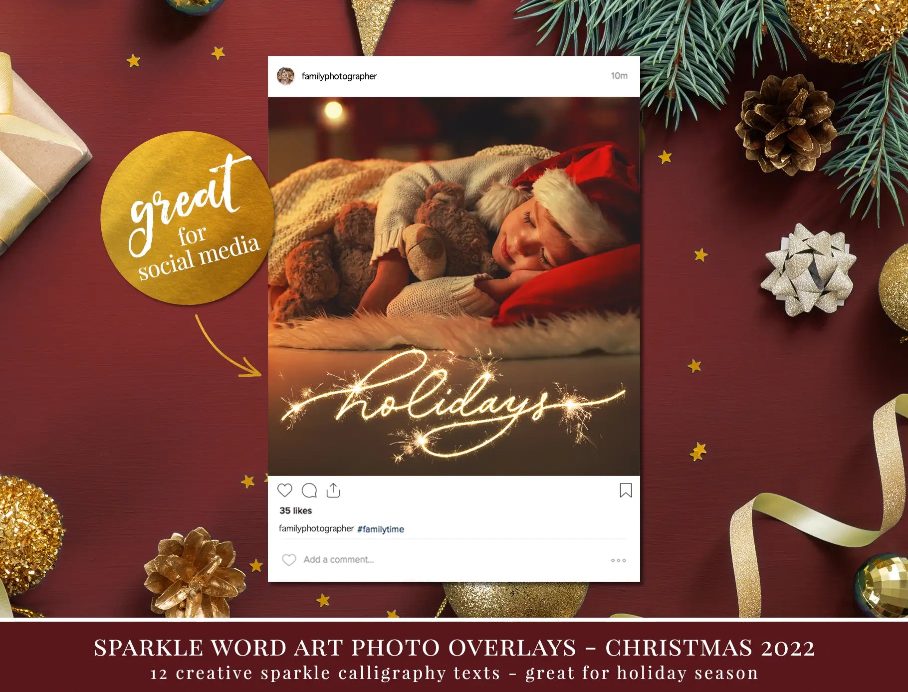 Perfect for seasonal portraits, Christmas mini sessions and festive storytelling images where gentle sparkle and message work together.