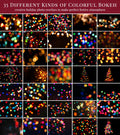 Create joyful, colorful and vibrant holiday photos with this beautiful collection of colorful holiday bokeh photo overlays designed especially for photographers.