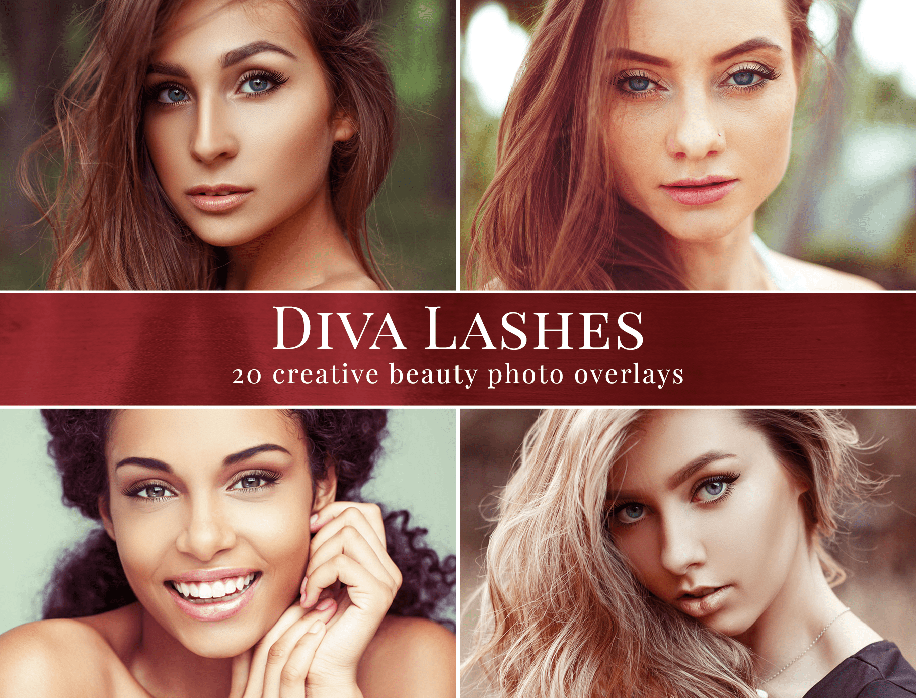 Create bold, glamorous and eye-catching portraits with this collection of Diva lashes photo overlays designed especially for photographers.