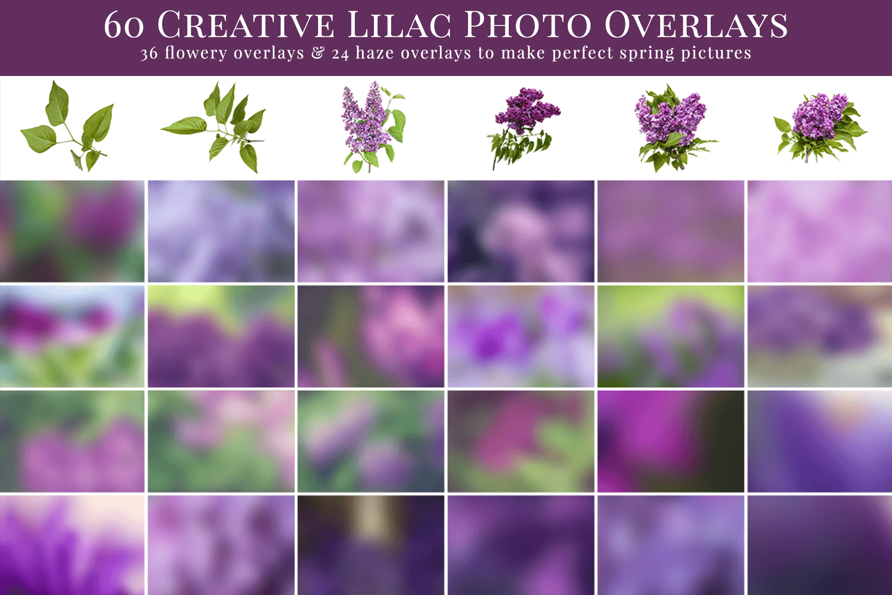 • 36 lilac flower overlays + 24 haze overlays