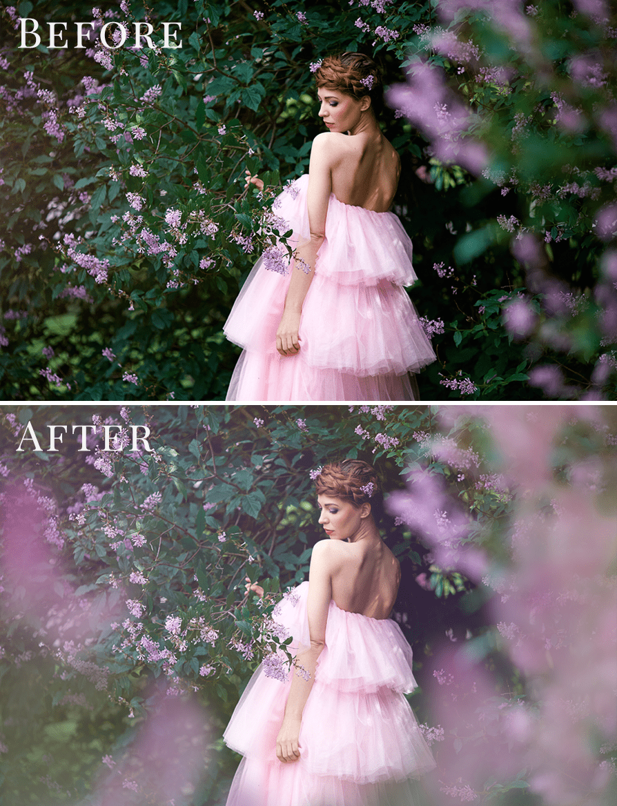This pack allows you to style enchanting scenes with a shooting through the lilac flowers effect, adding gentle foreground blur, depth and natural elegance to your images.