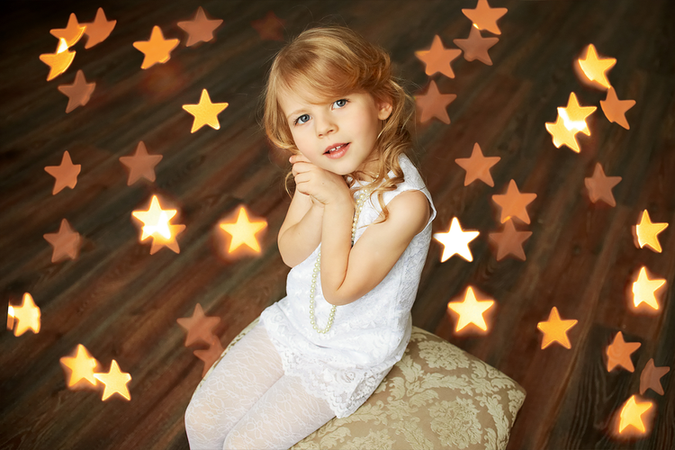 Gold star bokeh works perfectly as a subtle finishing touch — adding shine and emotion without overpowering the subject.