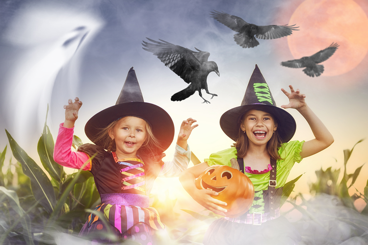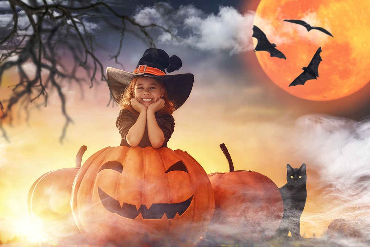 You can combine elements such as bats, ravens, spiders, webs, moons, black cats, skulls, ghosts, clouds and fog to build unique compositions for every photo.