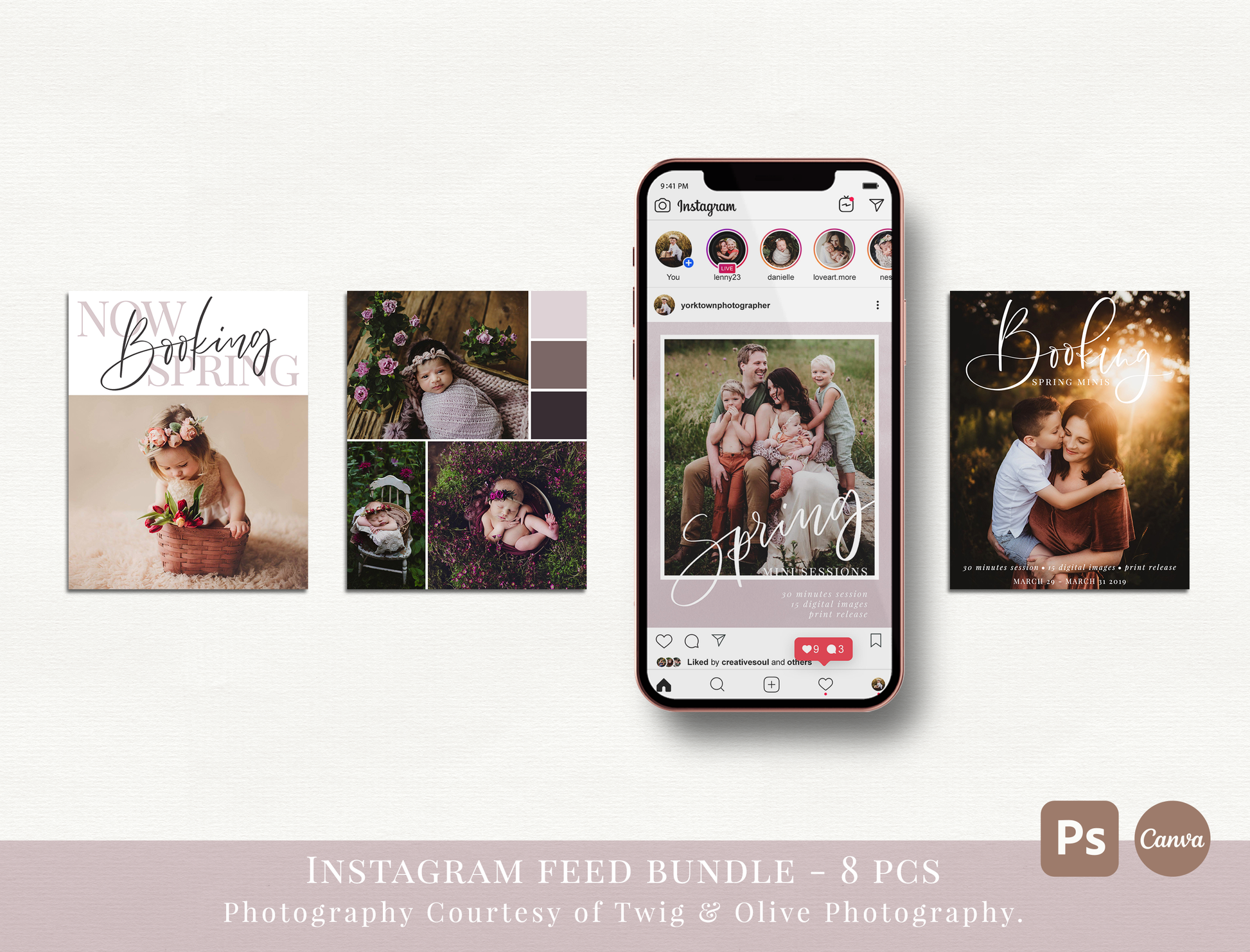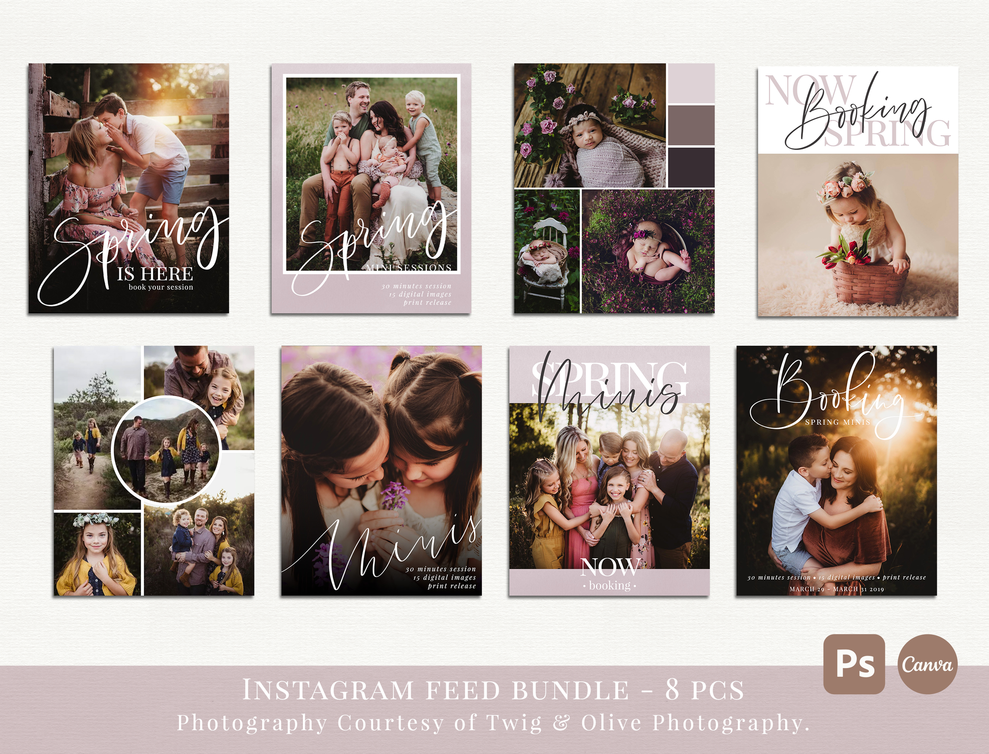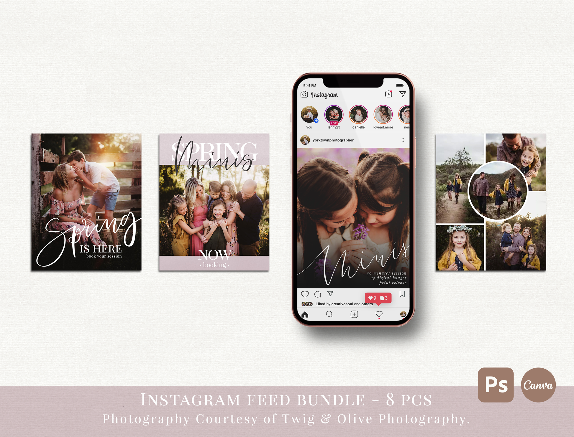 Promote your spring mini sessions with a clean, modern set of Instagram feed templates designed especially for photographers.