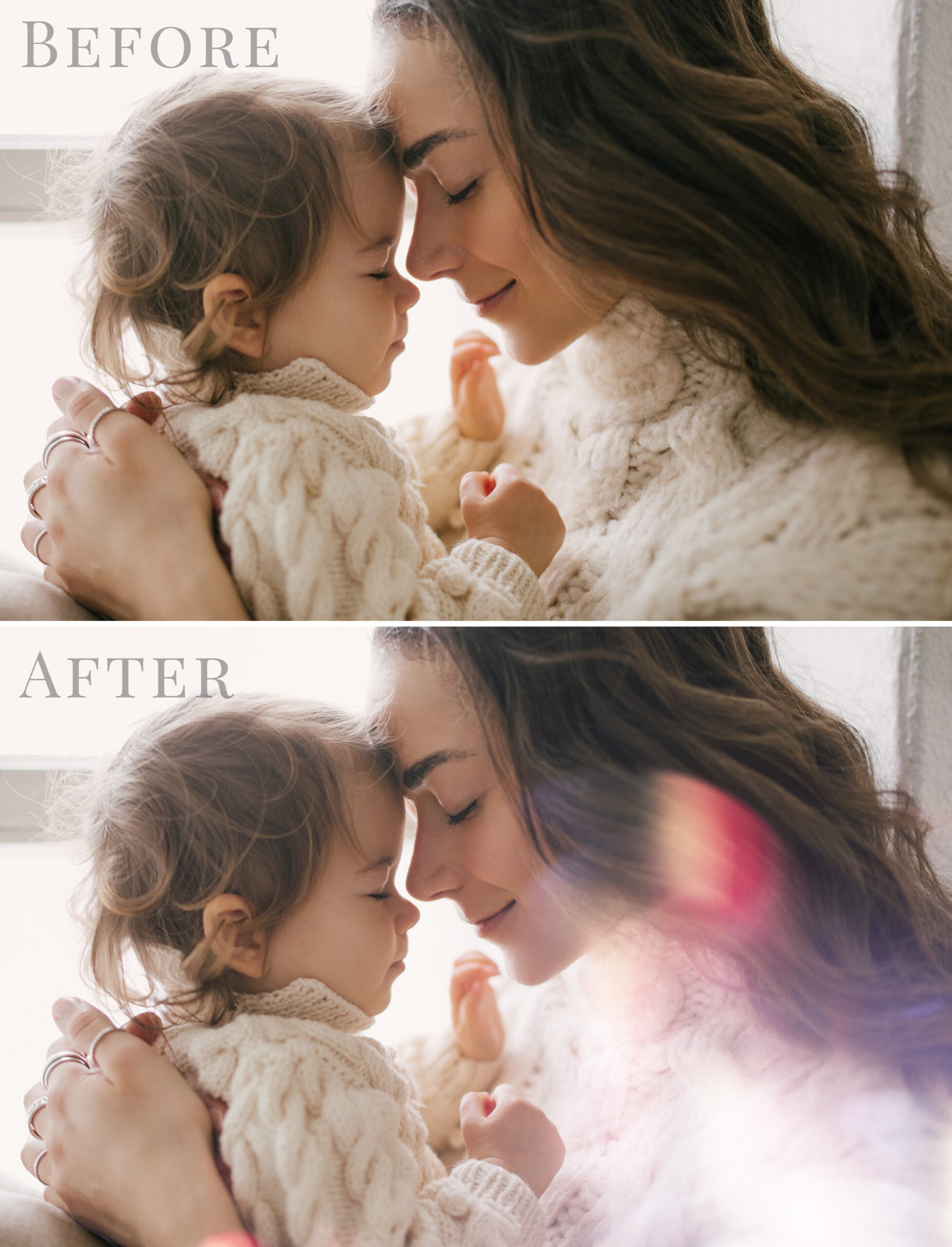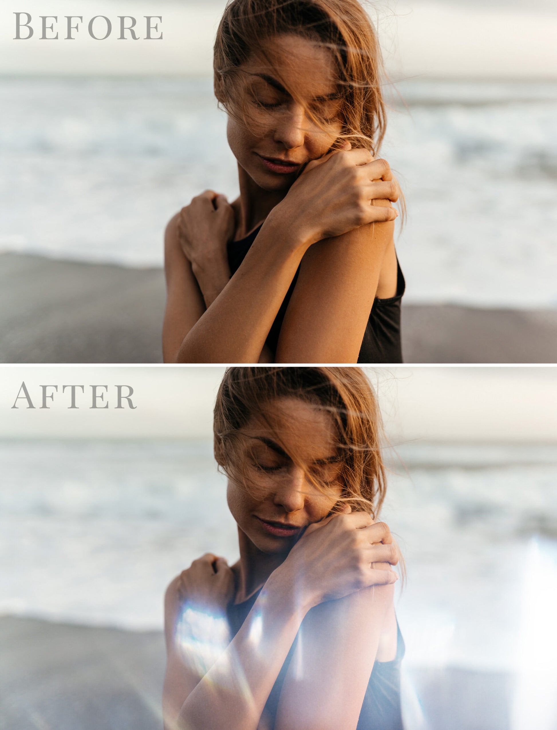 The overlays blend smoothly into your photos and allow you to create bold or subtle light effects depending on the mood you want to achieve.