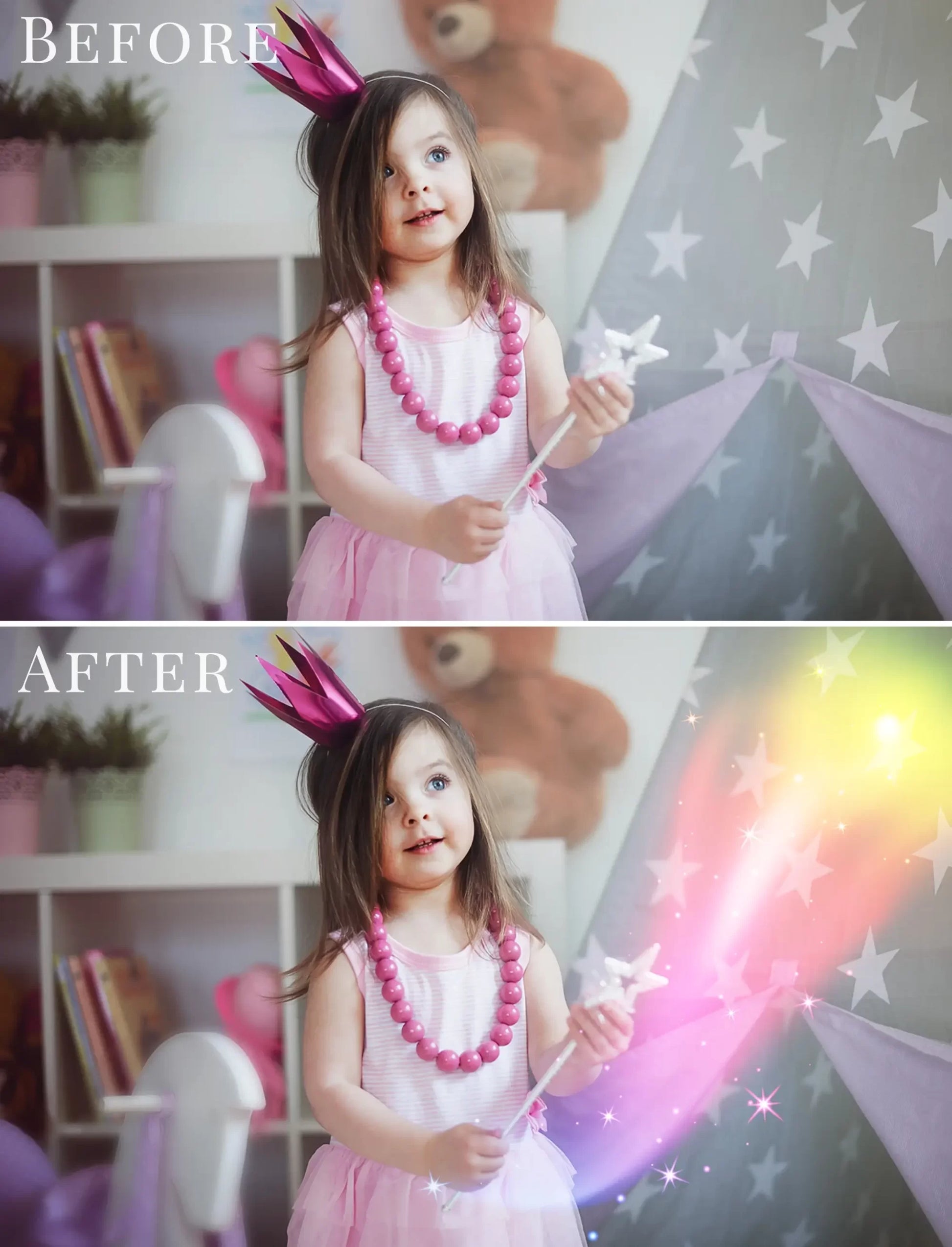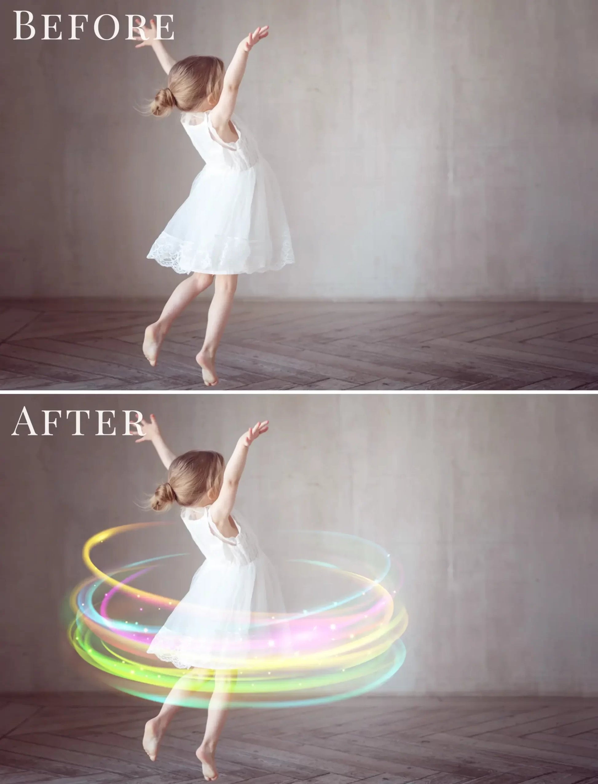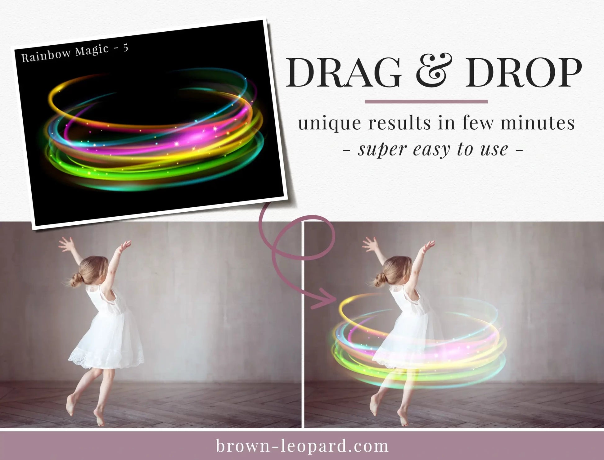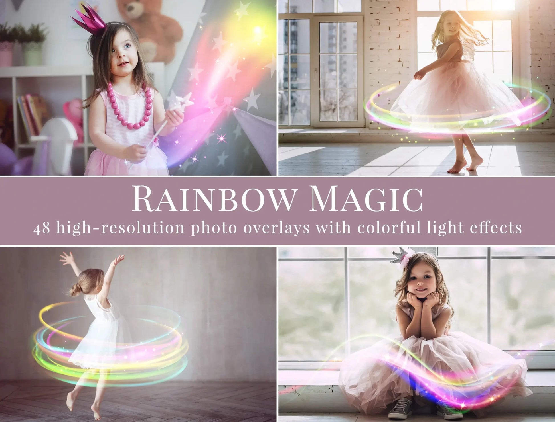 These overlays help you add playful rainbow light and dreamy color atmosphere to your images, creating cheerful scenes full of emotion and imagination.