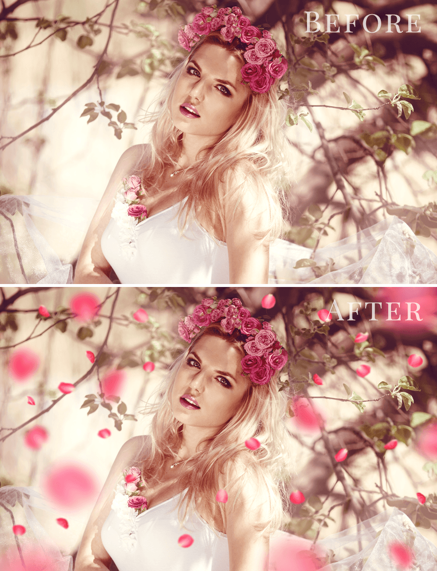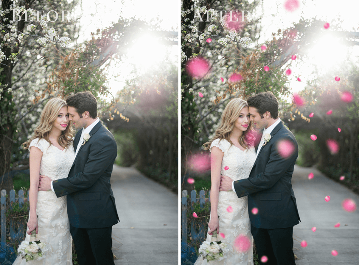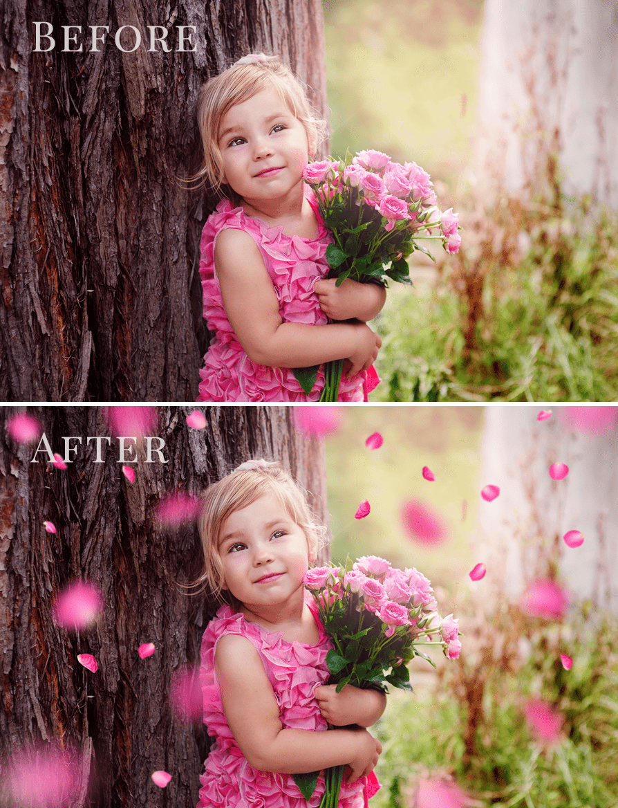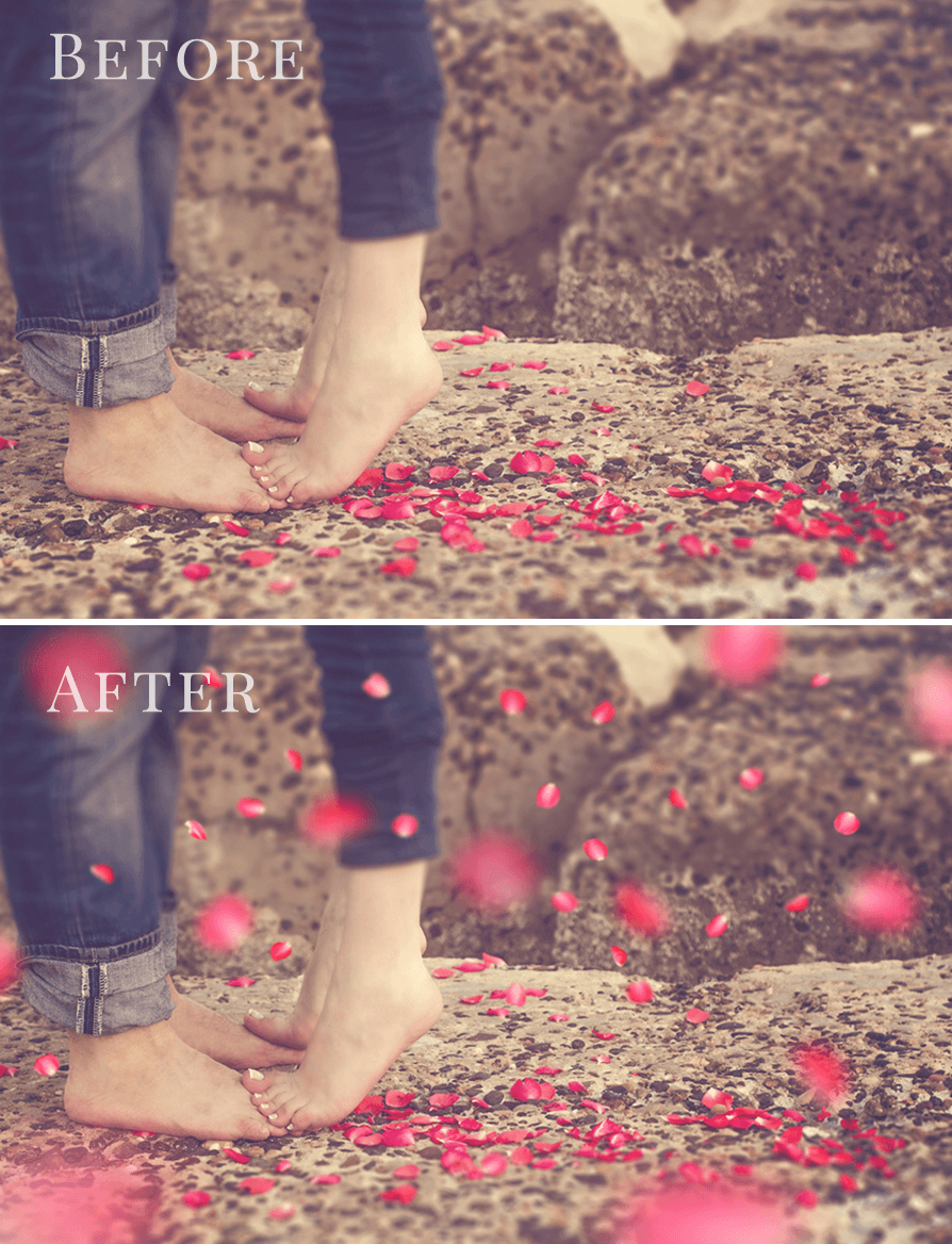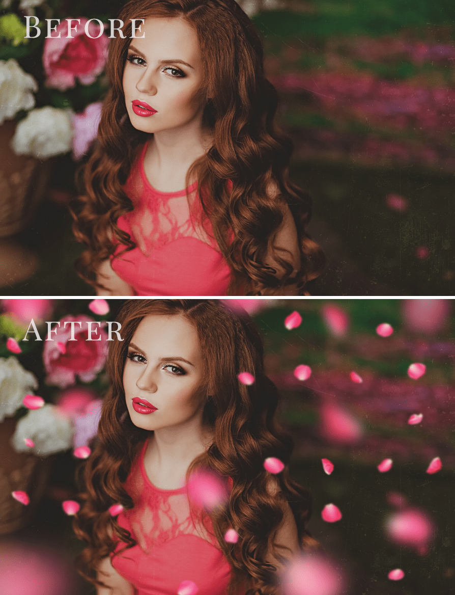 Create soft, romantic and artistic photos with this rose petals photo overlay set designed especially for photographers.