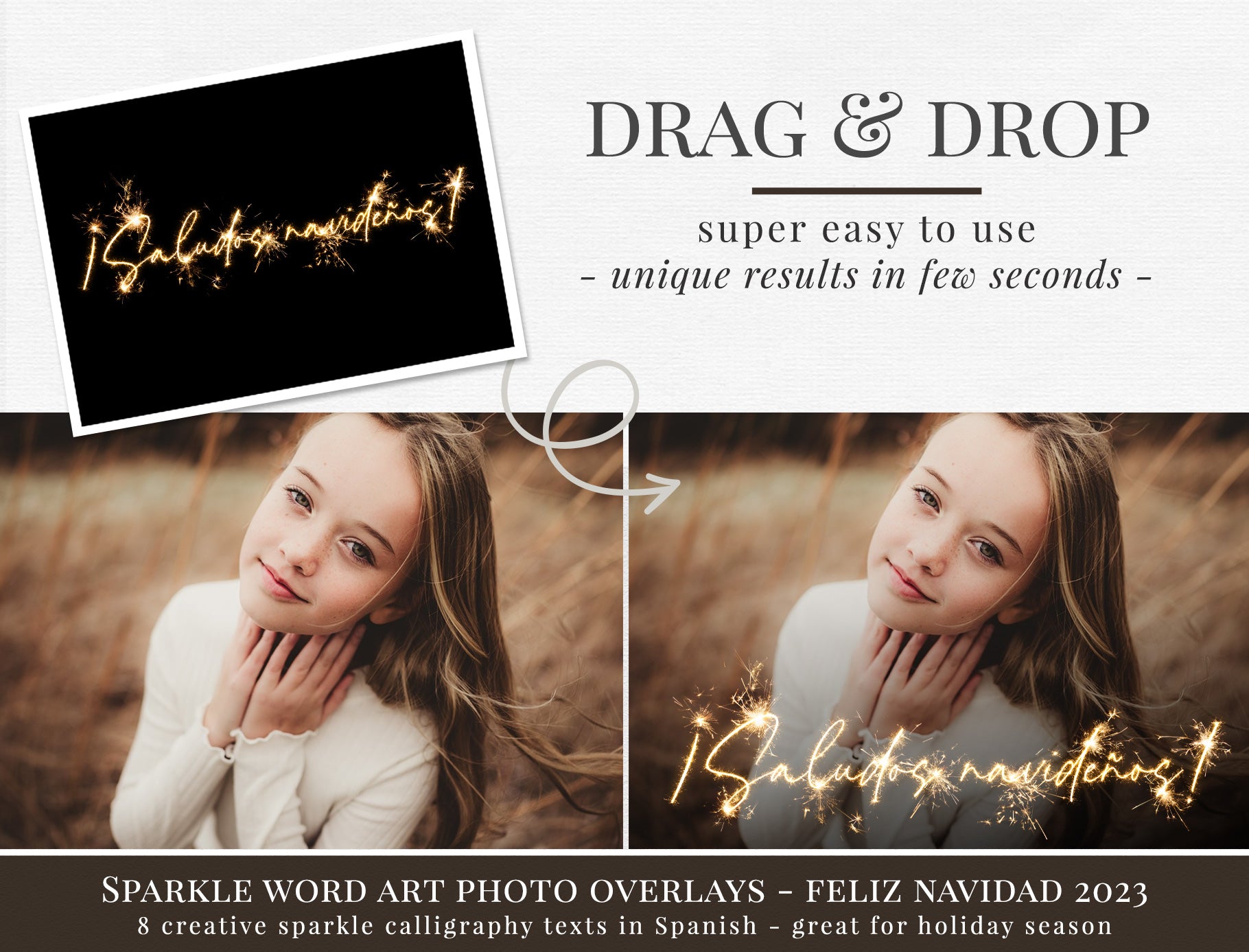 Want to add Spanish Christmas sparkle wording to your holiday photos?