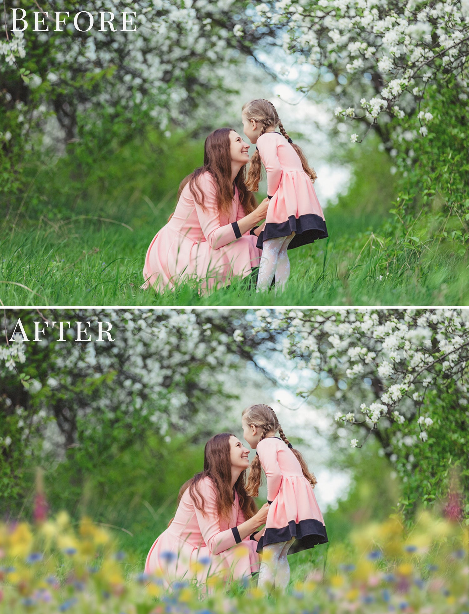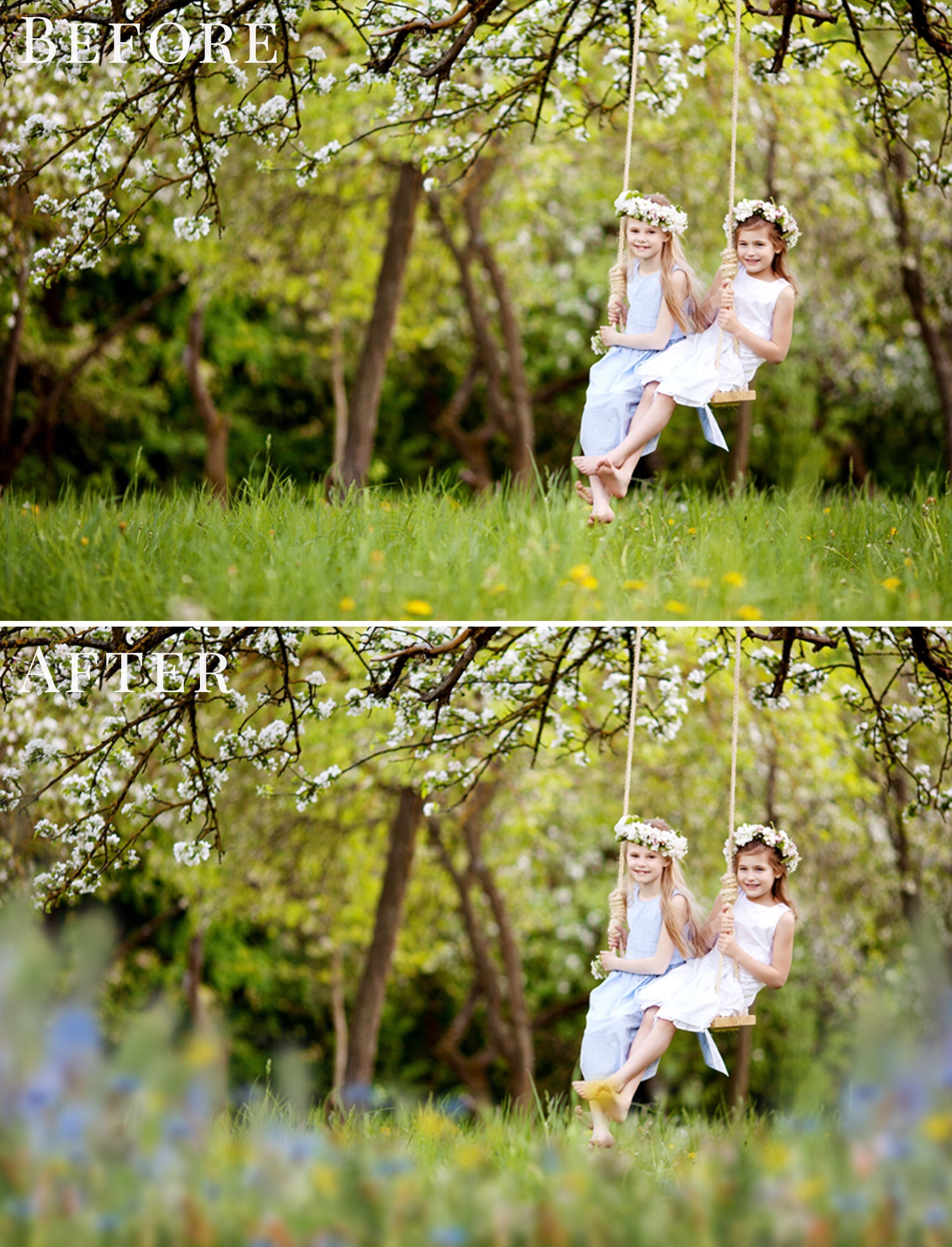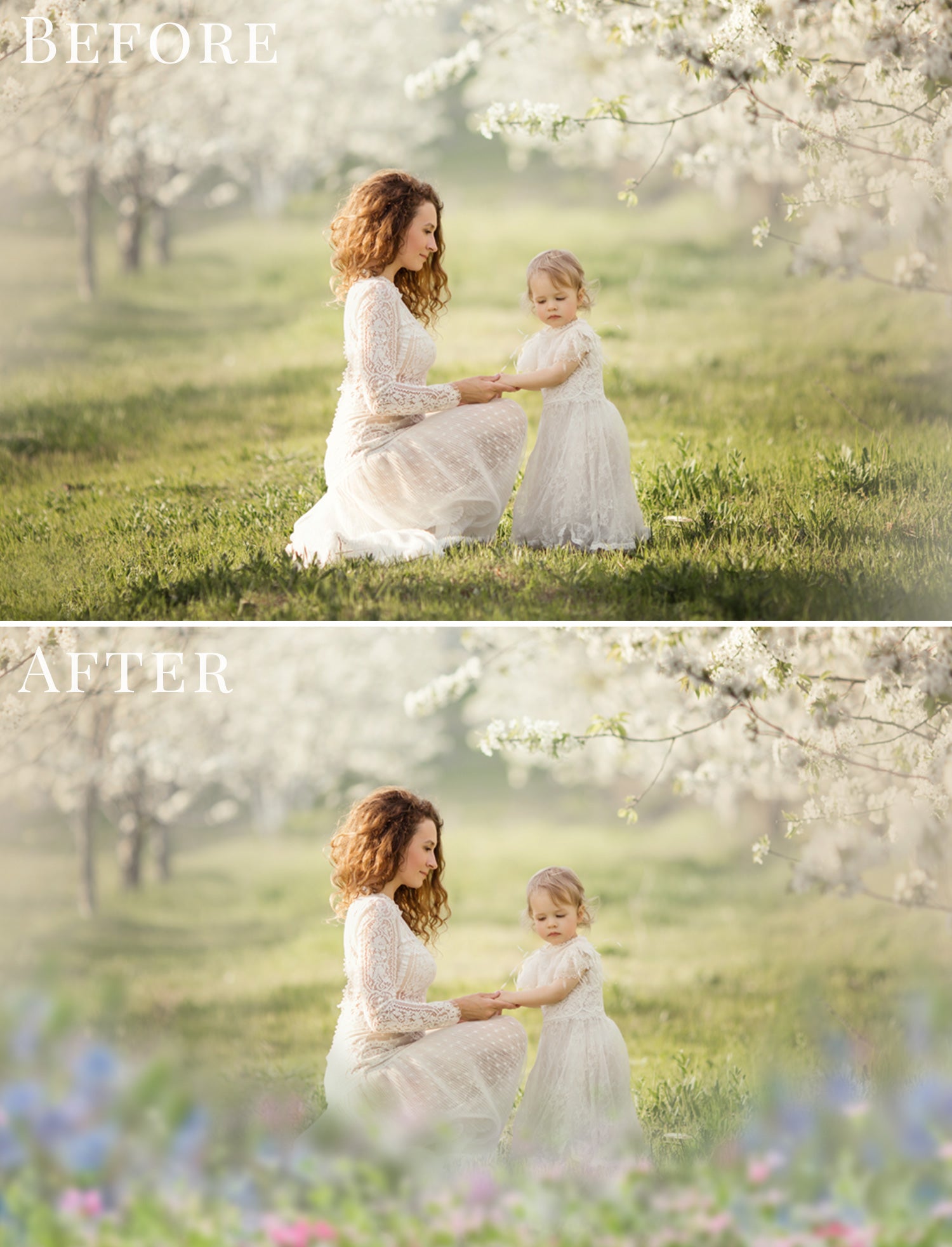 The meadow effect creates depth and natural framing, making your photos feel airy, warm and professionally styled.