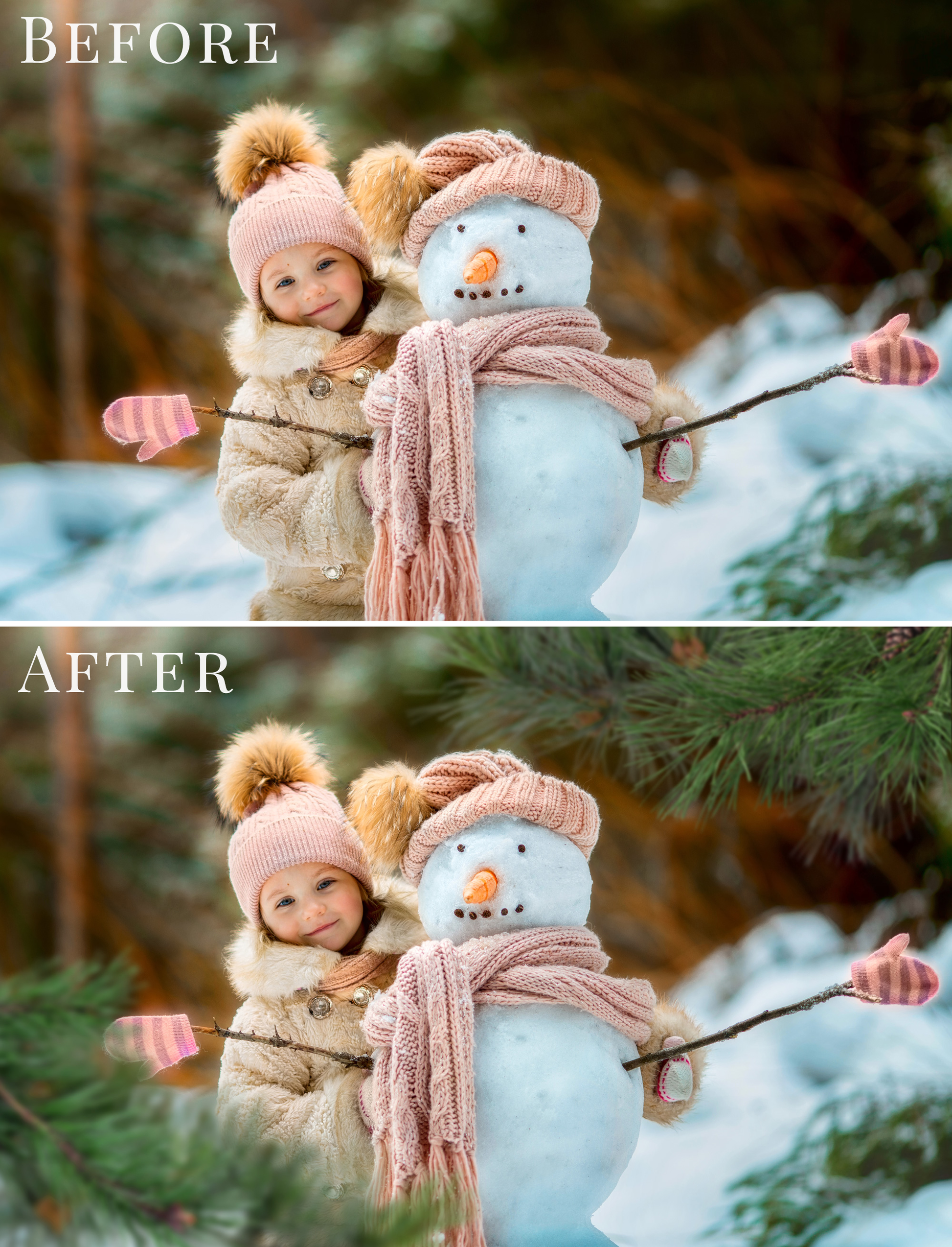 This pack allows you to style beautiful winter scenes with a shooting through the pine branches effect, adding depth, softness and authentic forest atmosphere to your images.