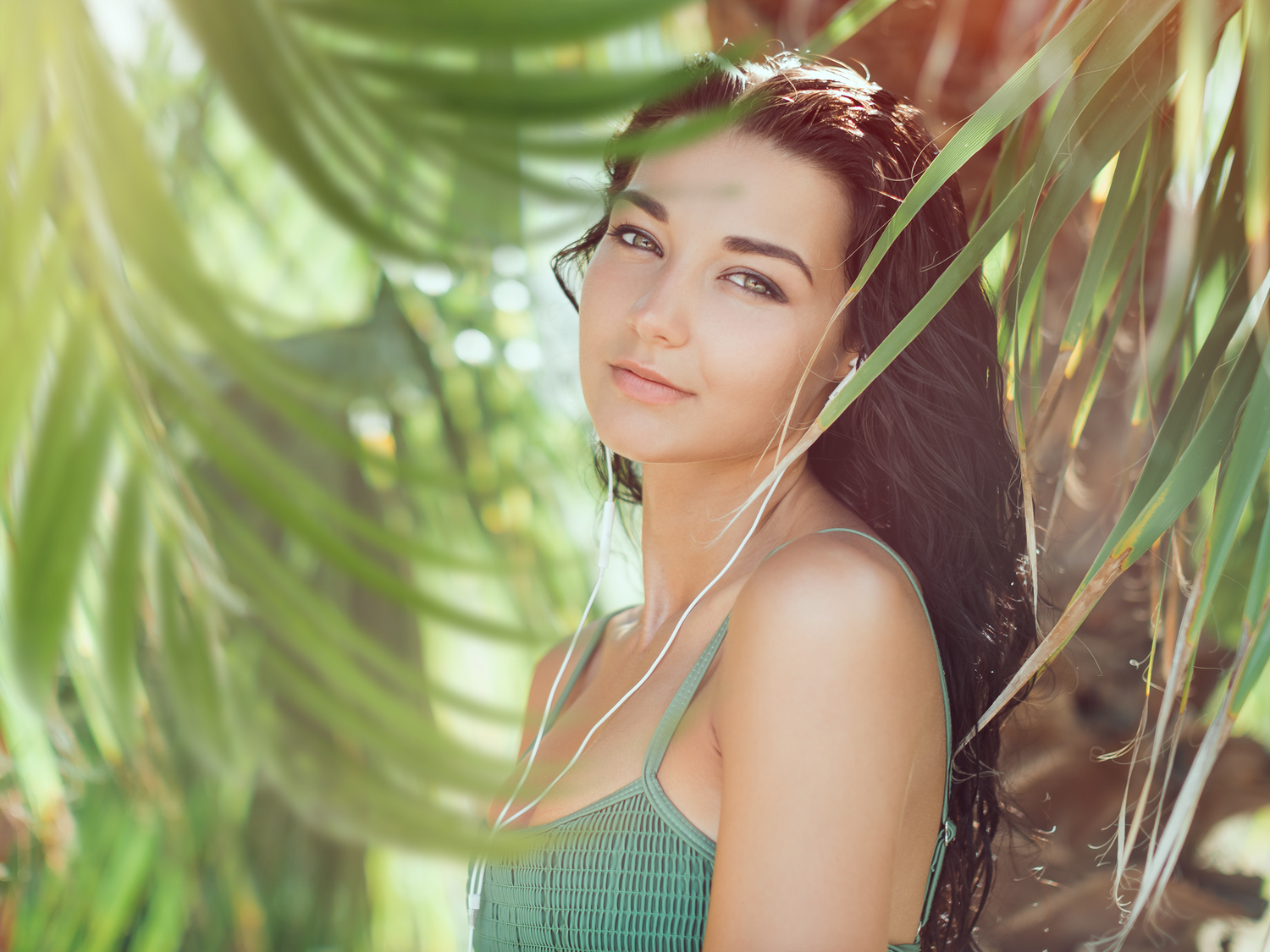 Palm leaves frame the subject beautifully while keeping the focus exactly where it should be.