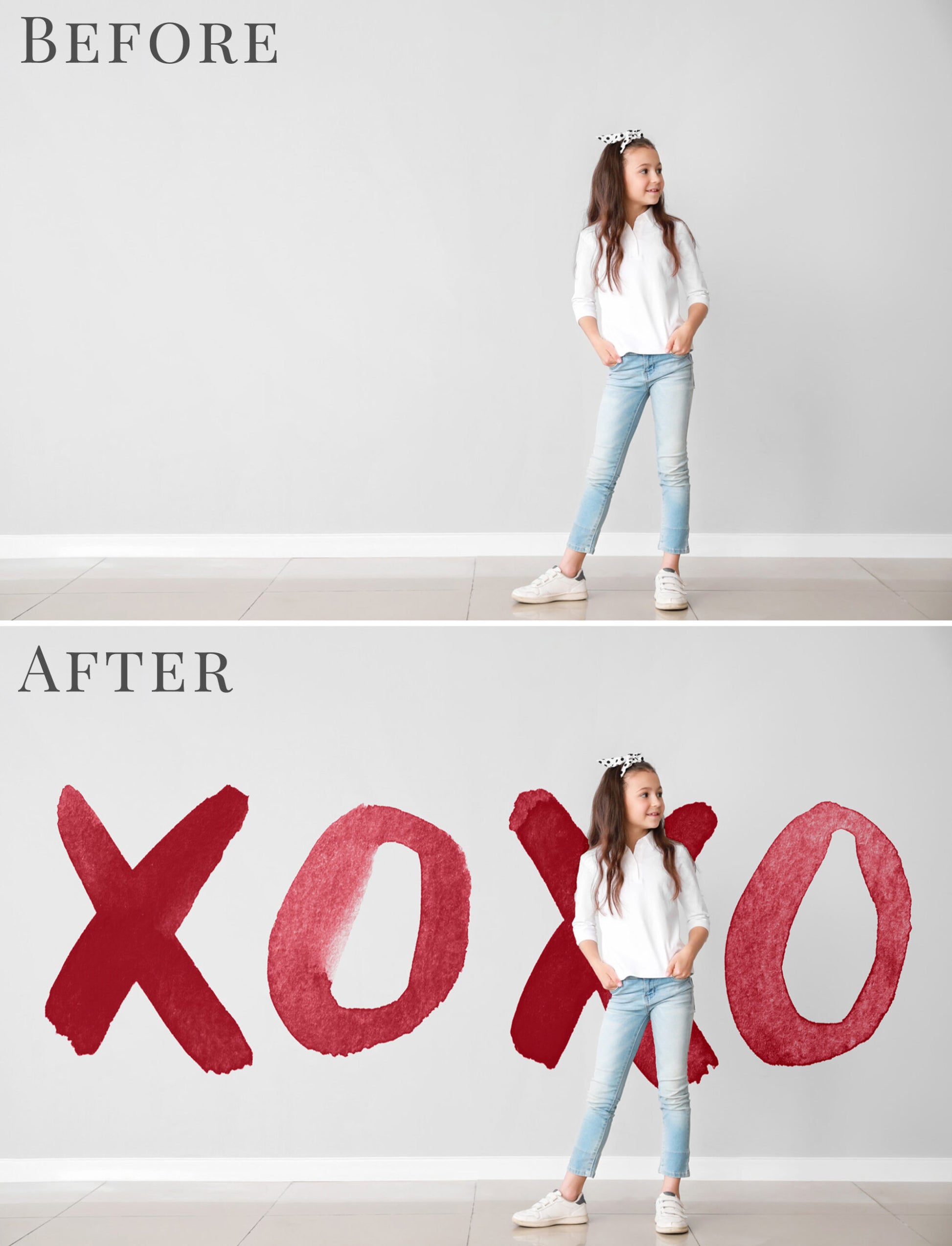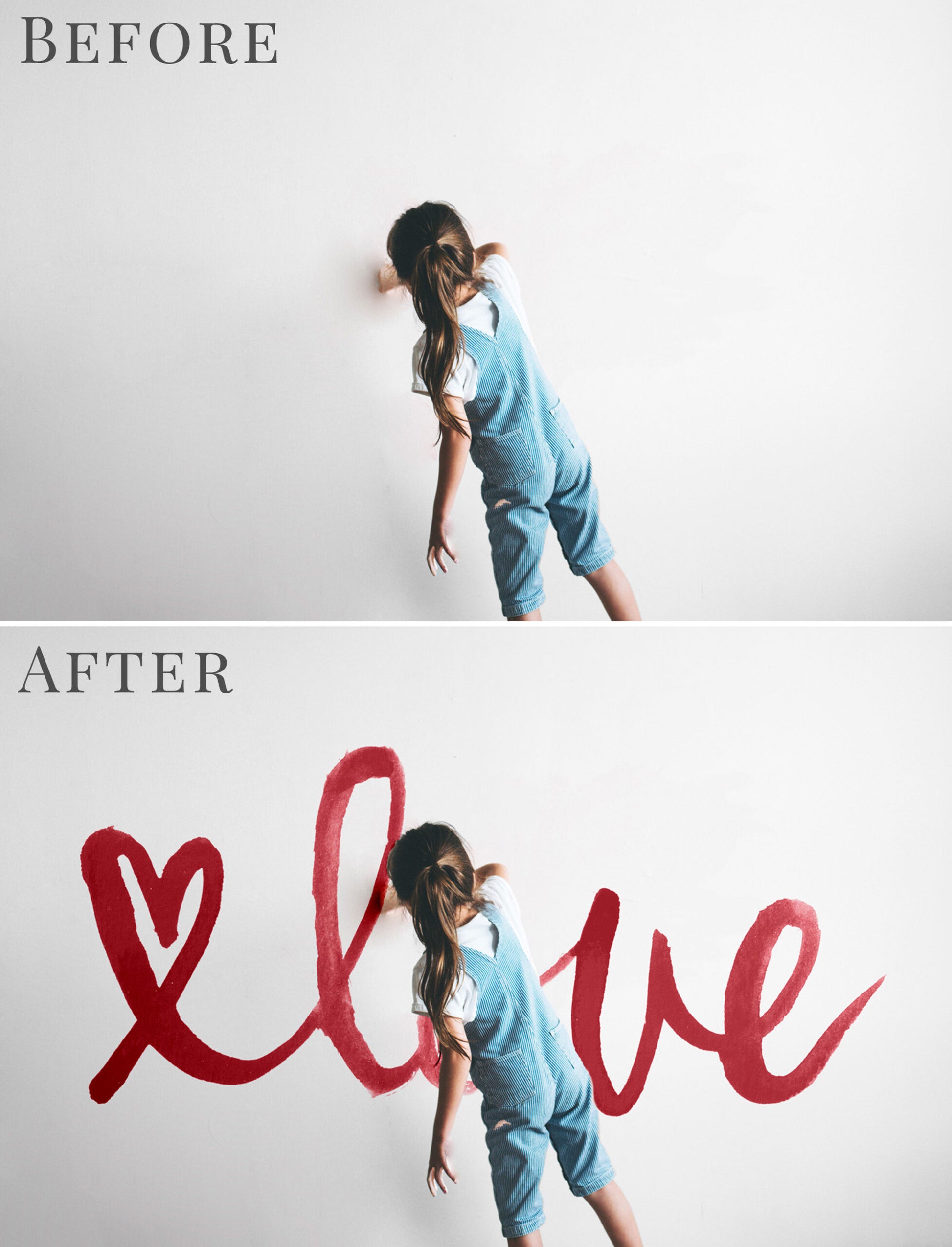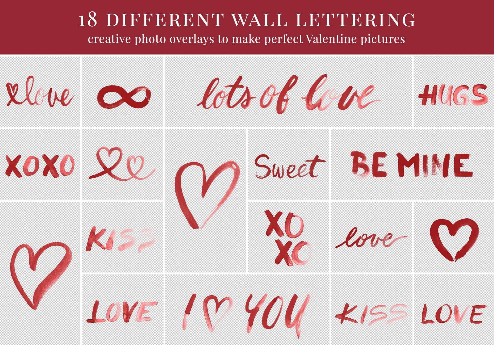 Create playful, romantic and creative Valentine photos with this set of 18 unique wall photo overlays designed especially for photographers working with children.
