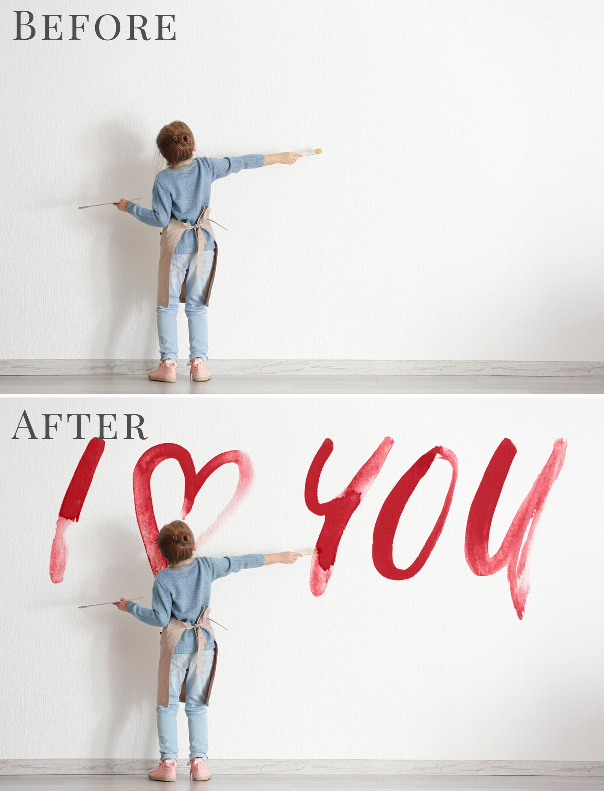 These overlays feature hand-drawn writing and painting effects on the wall, helping you turn ordinary photos into fun, love-themed scenes full of imagination and emotion.