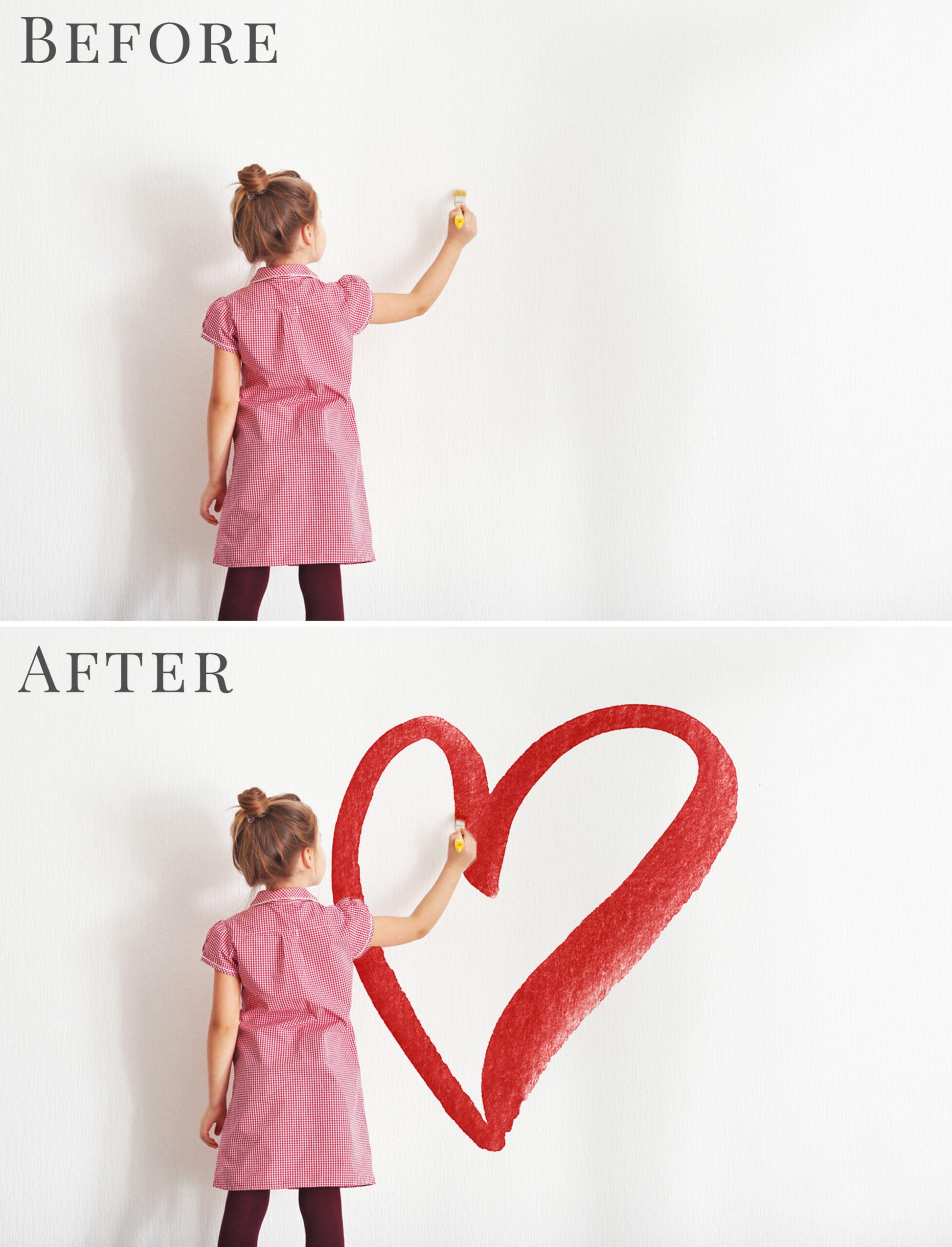 These wall photo overlays help you turn children portraits into fun, creative Valentine images in just a few minutes.