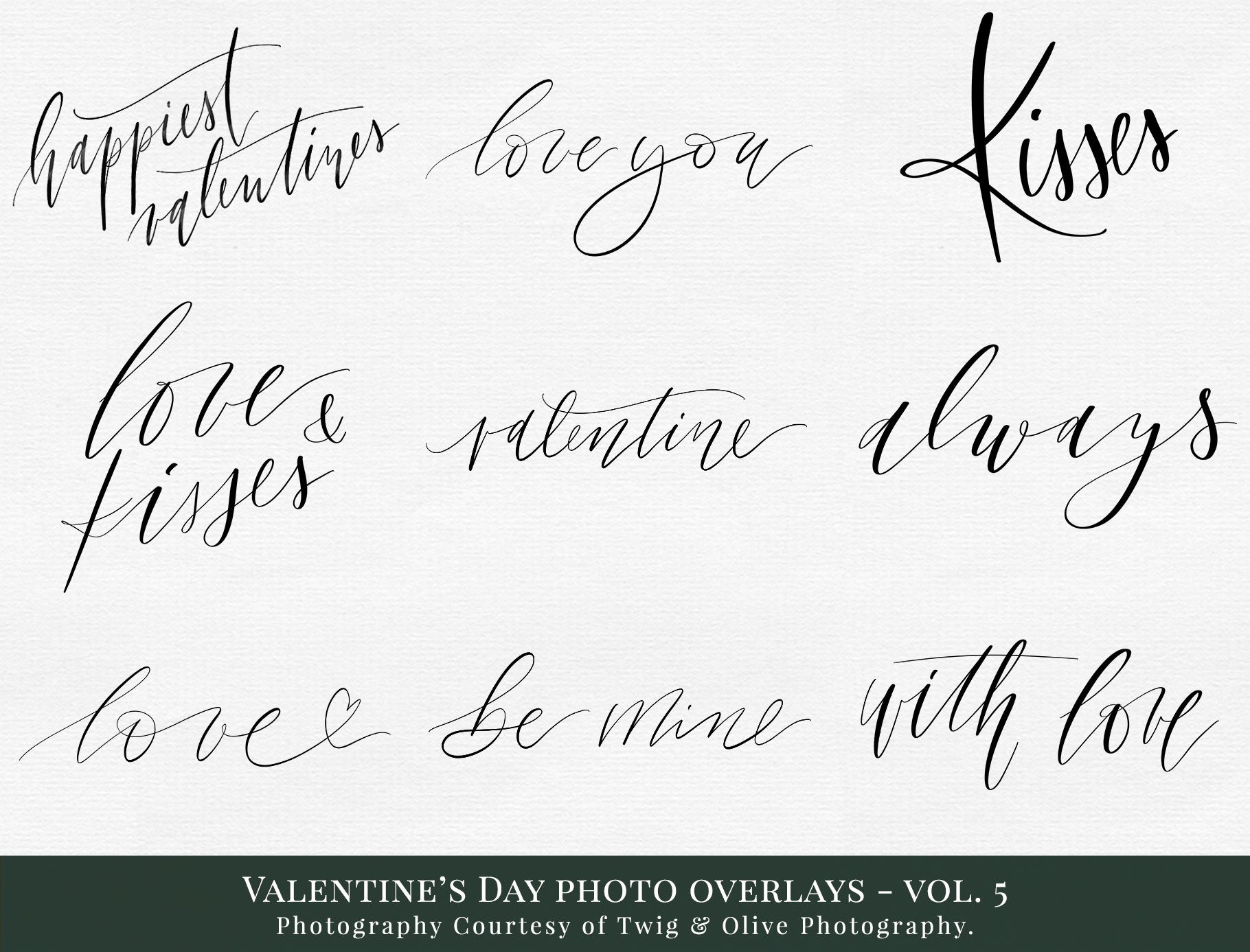 • Set of 9 hand-lettered Valentine word art photo overlays