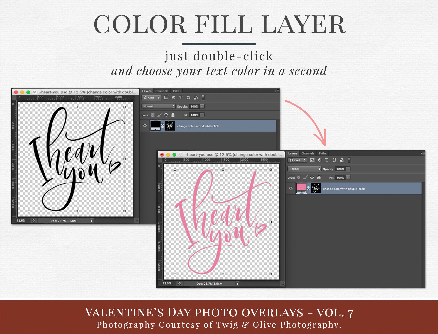 You will also receive PSD files with color fill layers, allowing you to easily change the text color with just one double-click — perfect for matching your brand or gallery style.