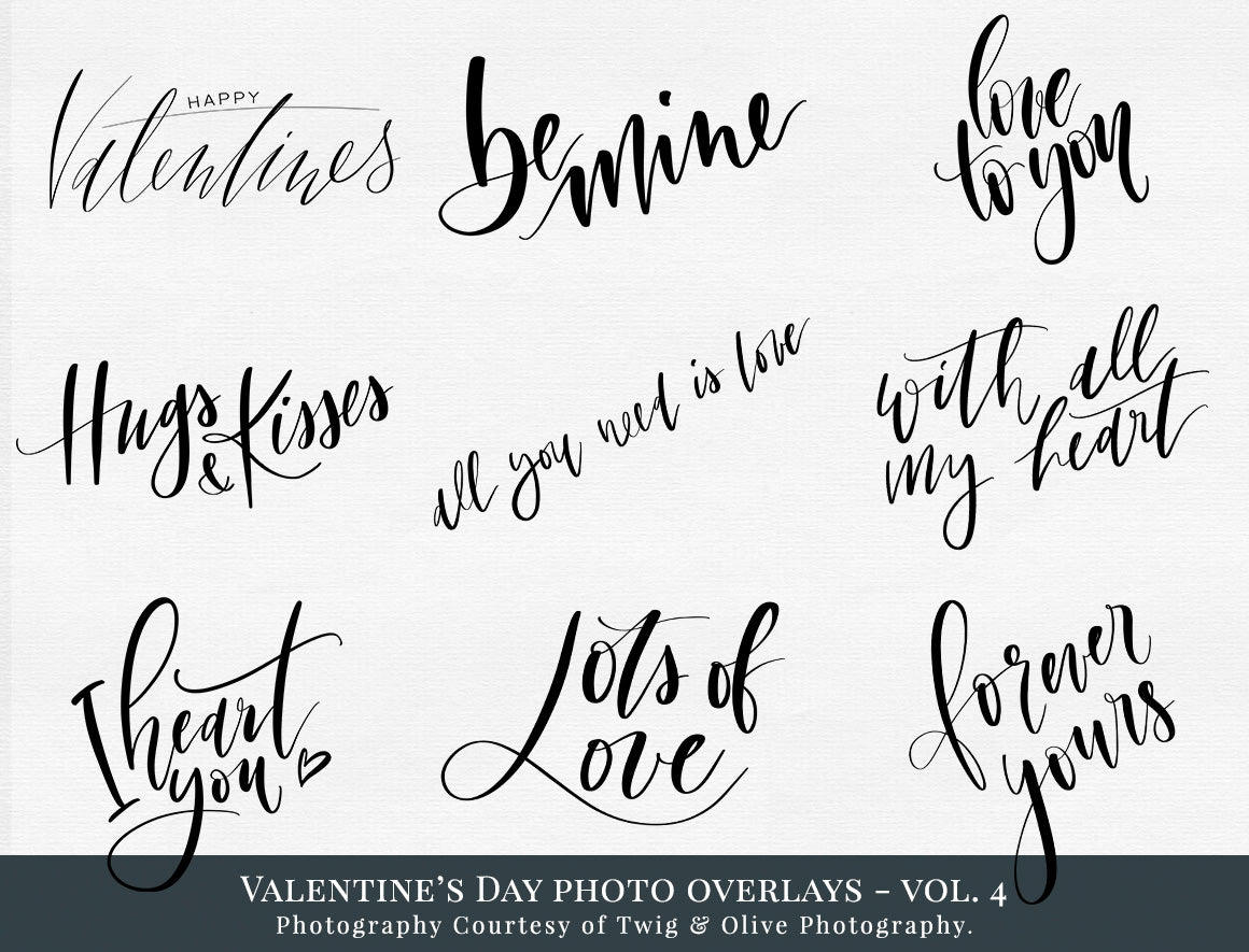 • Set of 9 hand-lettered Valentine word art photo overlays