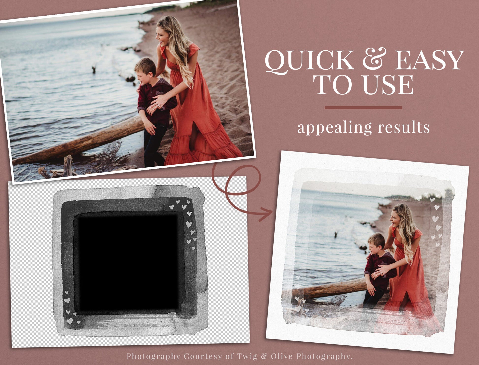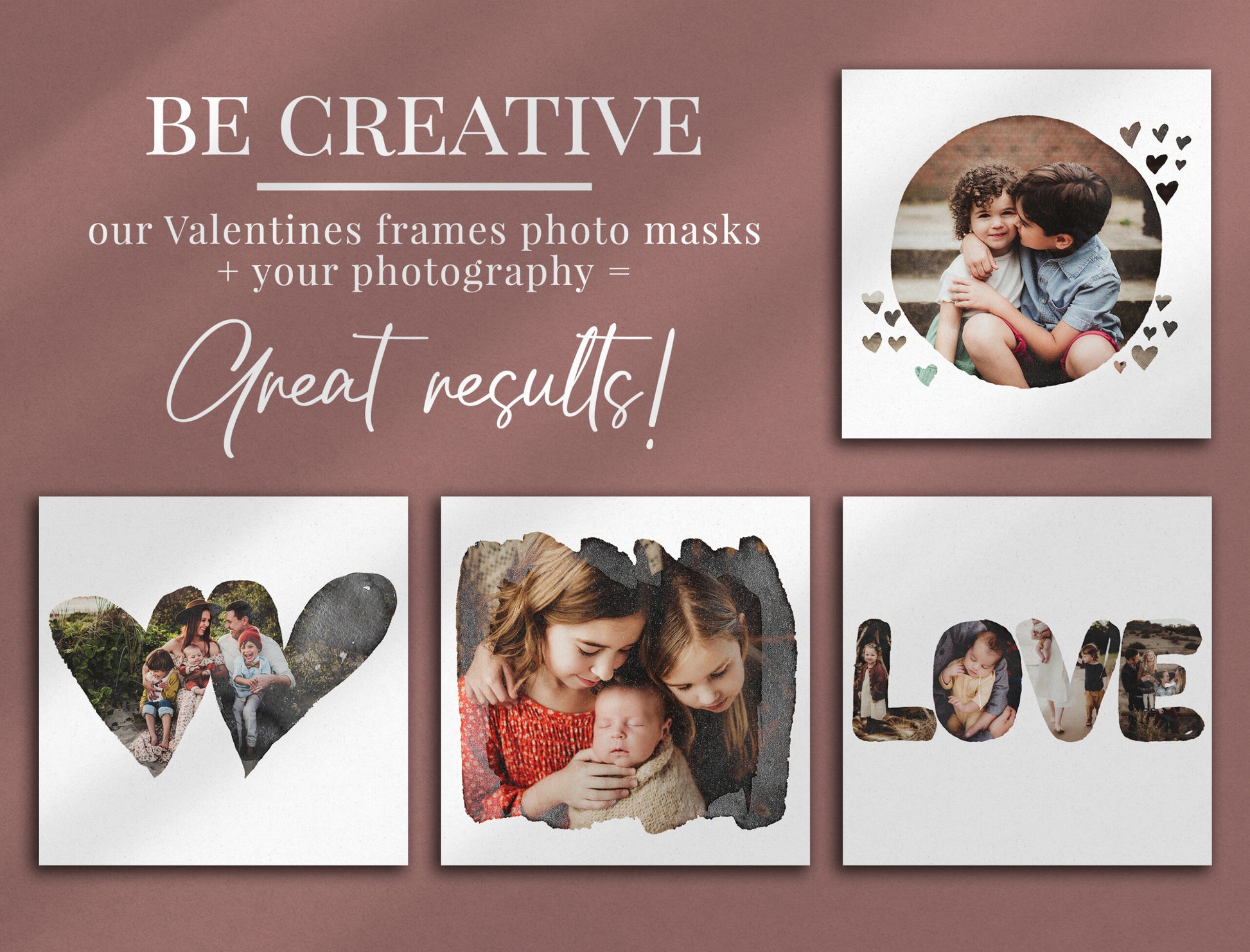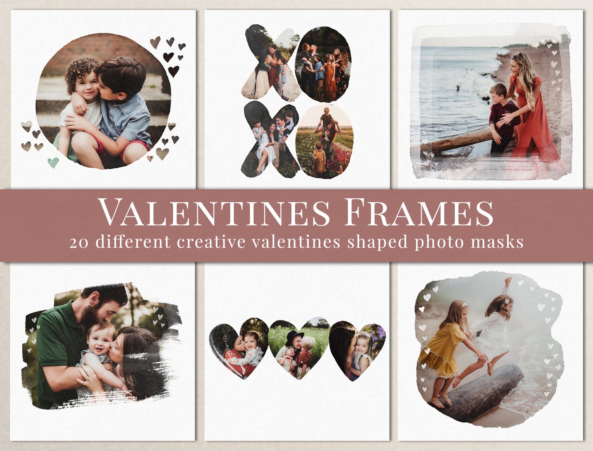 This collection of 20 watercolor Valentine’s frame photo masks is designed to help you create romantic, professional-looking photo designs in just a few clicks.