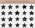 A collection of 20 watercolor star-shaped photo masks for creative photography projects.