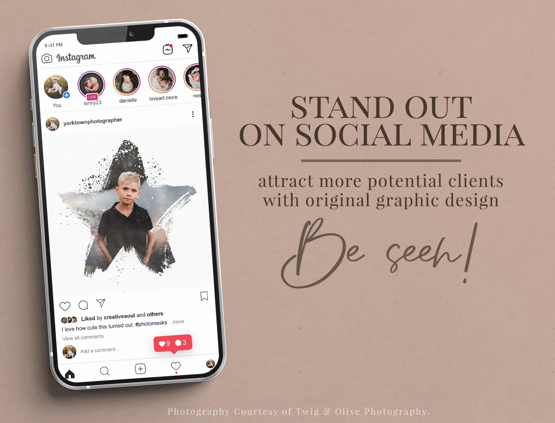 This collection of 20 watercolor star photo masks is designed to help you create playful, professional-looking images in just a few clicks.
